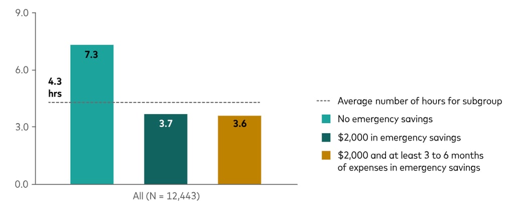 Um estudo da Vanguard mostra que quem não tem nada de reserva de emergência fica, em média, 7 horas por semana pensando sobre dinheiro.